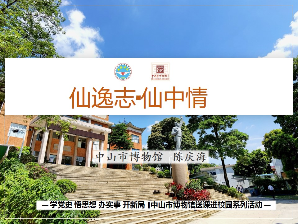 为贯彻习近平总书记在党史学习教育动员大会重要讲话精神,中山市博物馆立足本职,充分发挥博物馆教育功能,宣传爱国主义教育。4月7日,以清明节缅怀先烈为契机,中山市博物馆与杨仙逸中学合作,在该校举办“仙逸志、仙中情” 主题讲座,激励青年学生努力向学、爱国爱校。