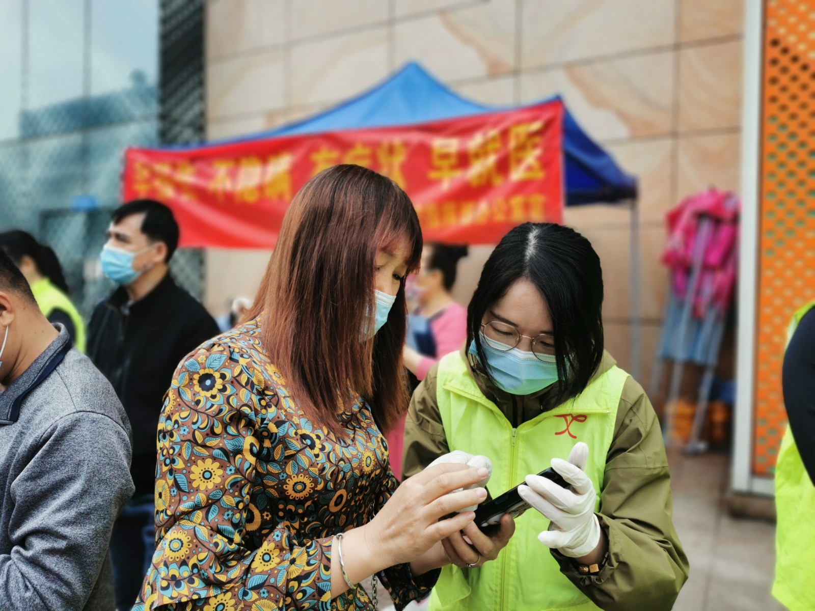 “您好!请佩戴好口罩!”“请按照间隔一米有序排队!”“请提前打开手机上的核酸检测预登记码!”……市文化广电旅游局志愿者们一遍遍耐心解说,一次次协助操作,帮助大家完成“粤核酸”资料的填写,并给予老人小孩等特殊人群更贴心的服务。在志愿者们的支持下,现场核酸检测工作秩序井然、高效顺畅。