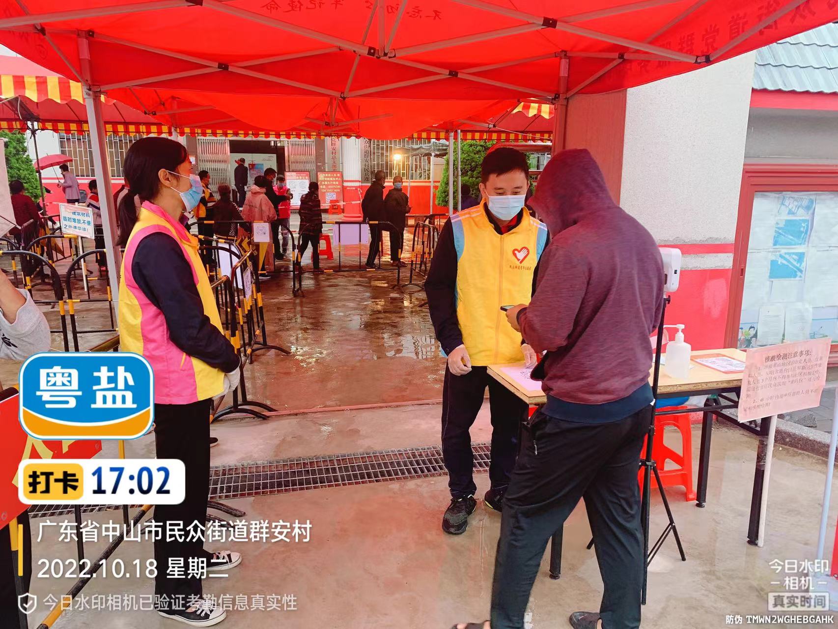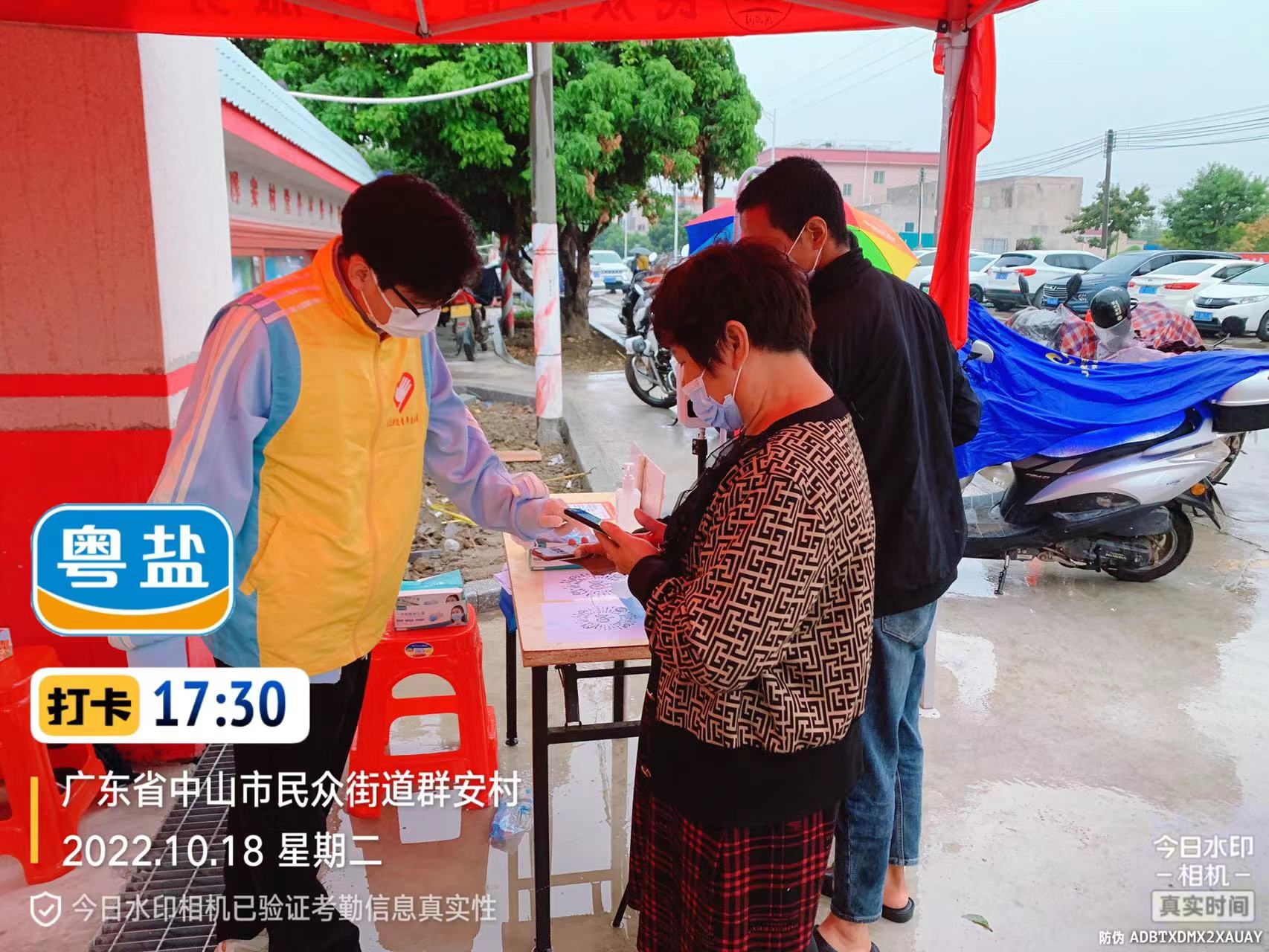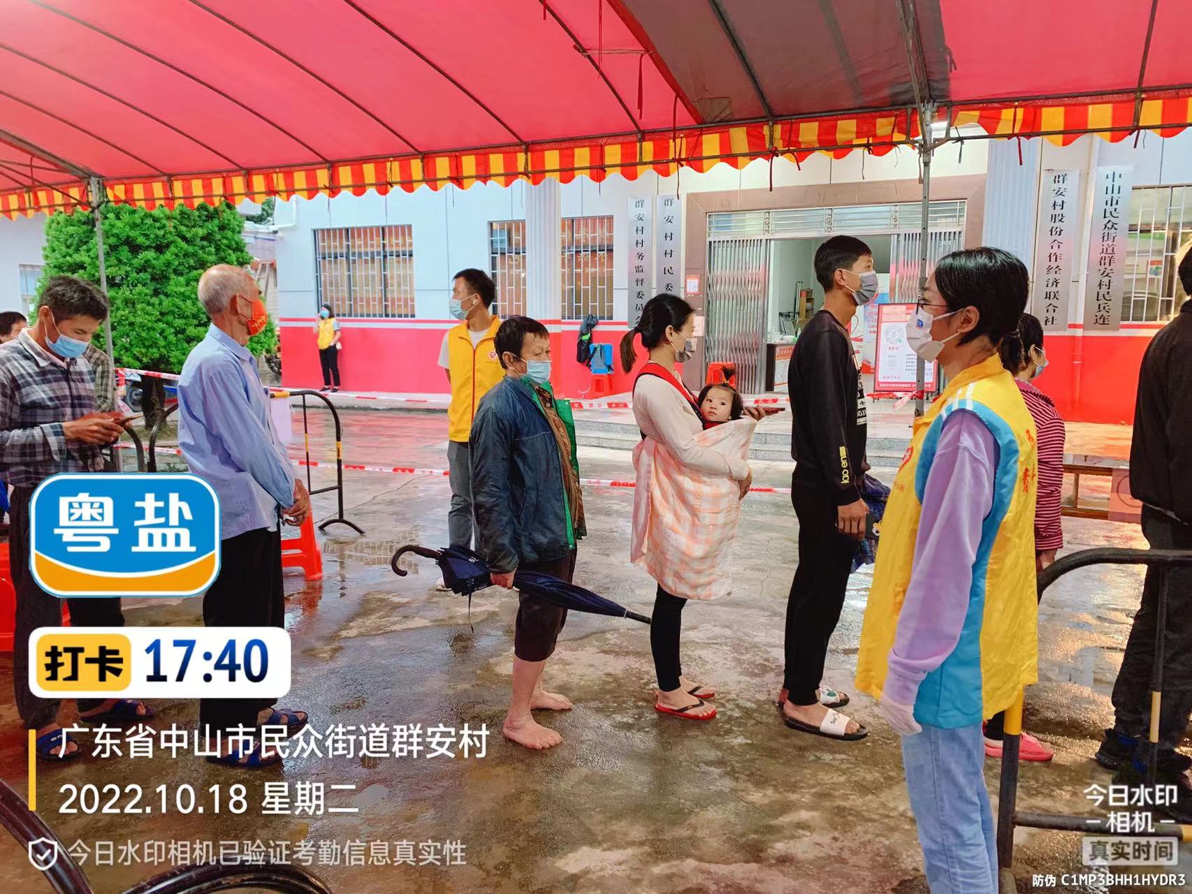 10月18日下午气温骤降,我司党员和职工志愿者冒雨参加民众镇群安村核酸检测志愿活动。